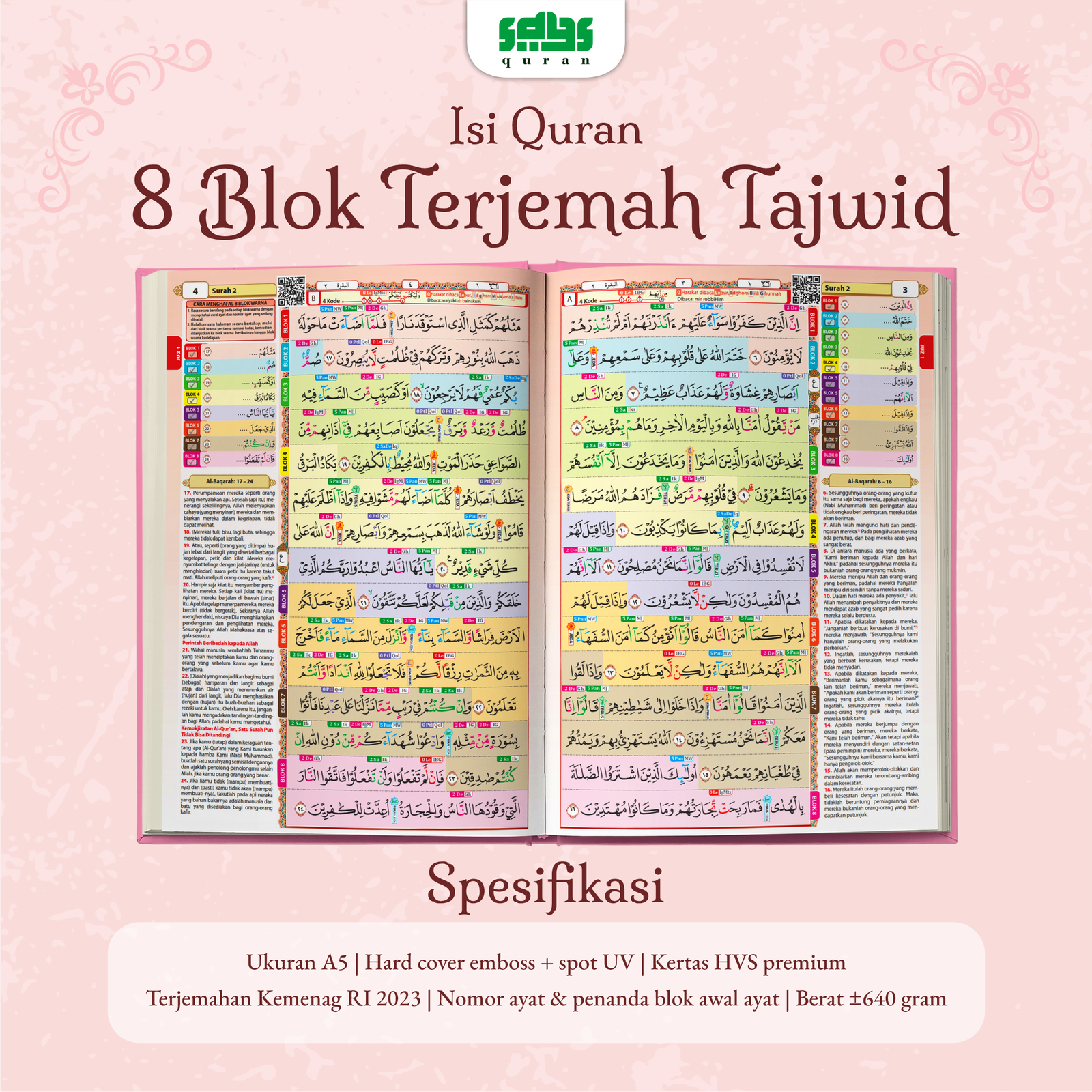 Al-Qur’an dengan tampilan aesthetic terbaru yang elegan dan menenangkan. Dicetak menggunakan khat Rasm Utsmani standar Indonesia dan tajwid warna sesuai Kementerian Agama RI. Menggunakan kertas matte premium yang nyaman dibaca. Cocok untuk ibadah harian maupun hadiah.
